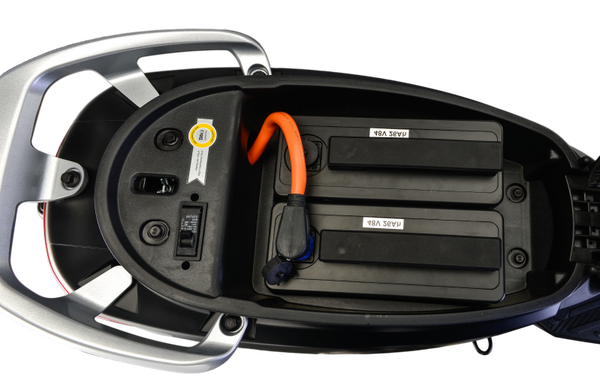 De zeer krachtige uitneembare lithium-ion accu heeft een actieradius van maximaal 80 kilometer*. U laadt de accu in 4-6 uur op. Indien gewenst kunnen er twee accu's naast elkaar worden geplaatst waardoor de actieradius verdubbeld naar 160 km.