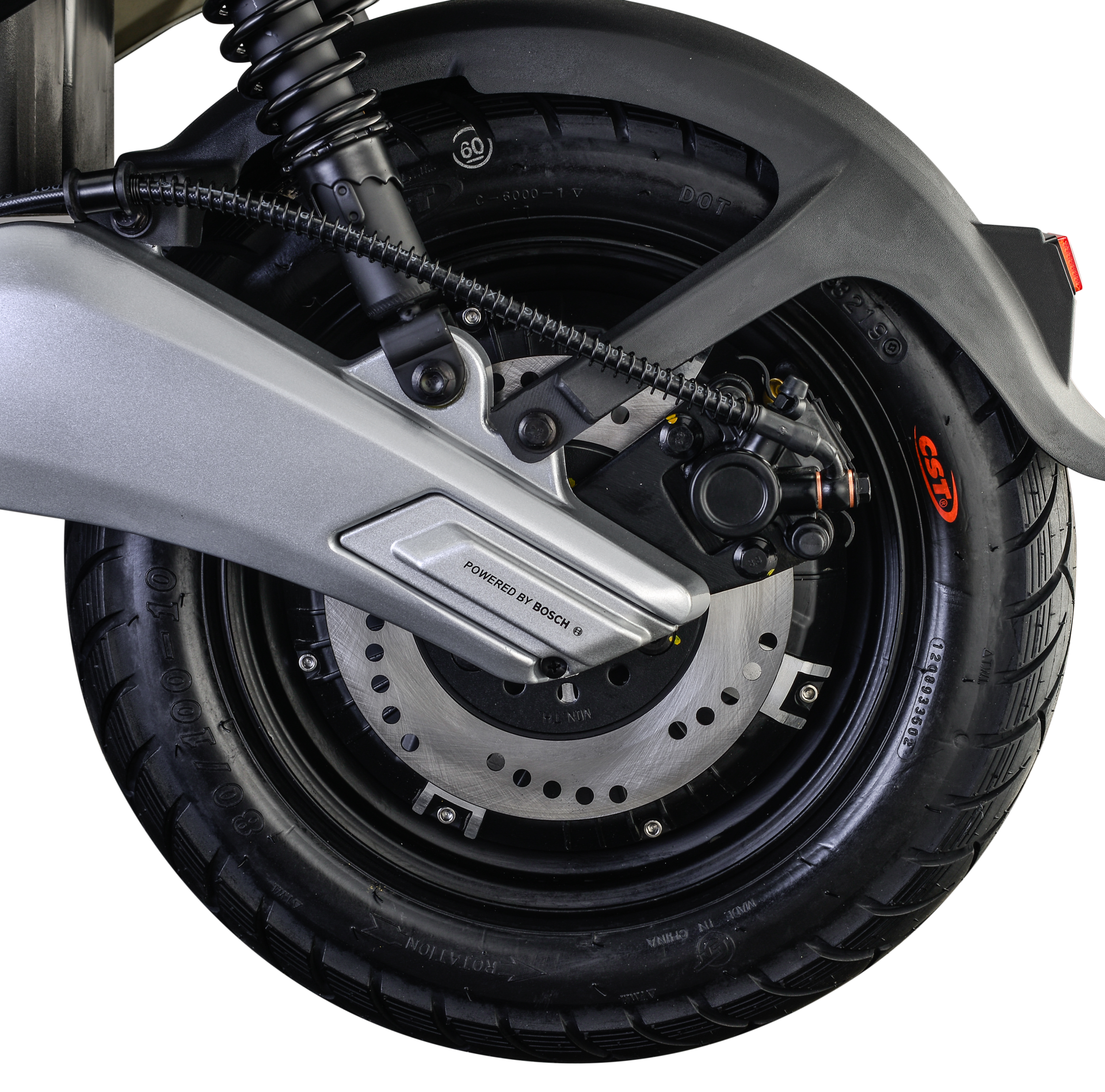 In plaats van een standaard achterbrug is de IVA E-GO S4 voorzien van een zeer sterke titanium swing-arm. Deze zorgt voor extra stevigheid en rijcomfort op het wegdek.
