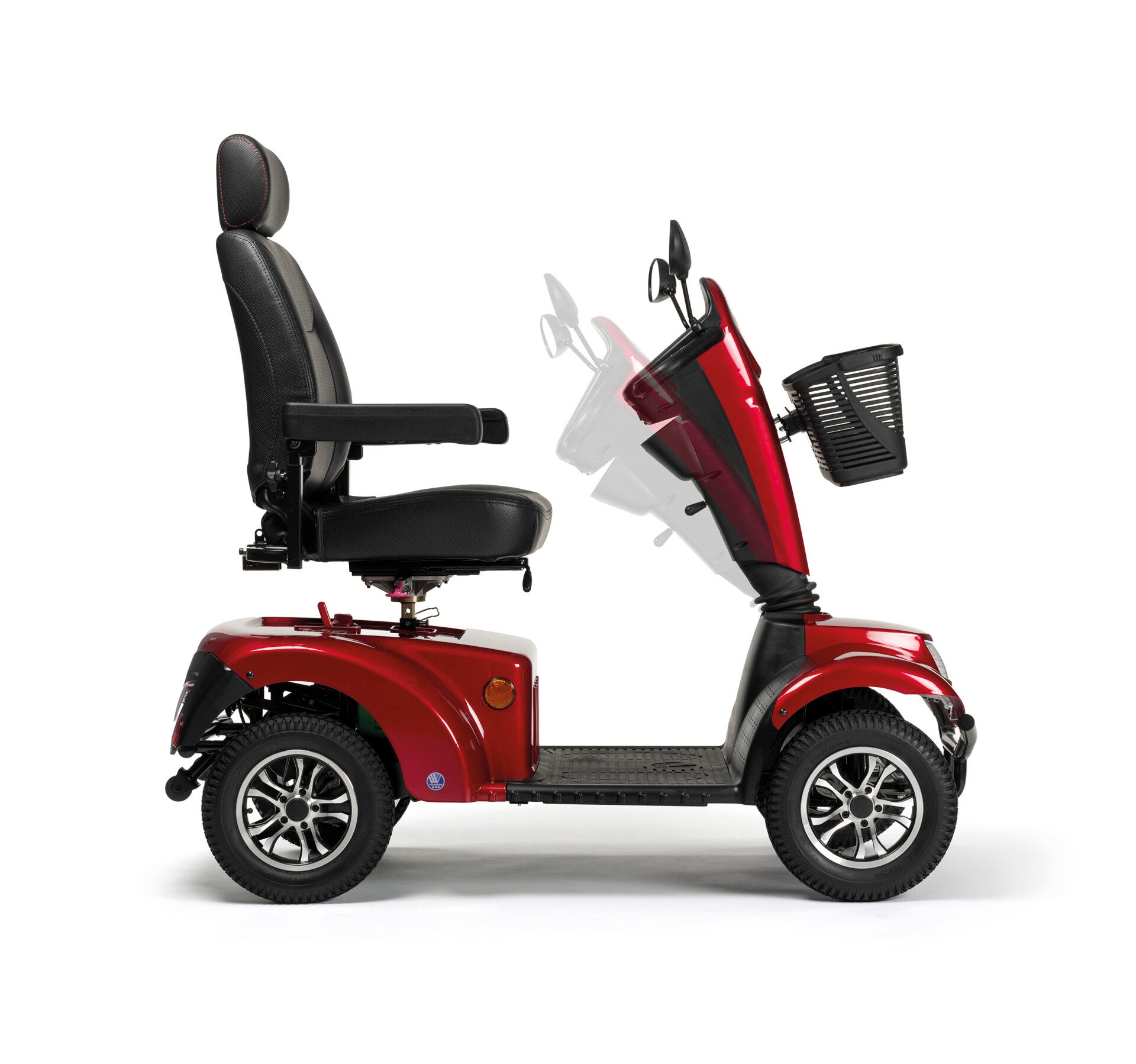 Zo hebben we de Vermeiren Carpo 2 Special Edition Scootmobiel 125 mm verkleint, zodat deze compacter is. Deze scooter heeft dezelfde wielen als de Vermeiren Carpo 4 Limited Edition zodat u nog meer grip hebt op de baan.