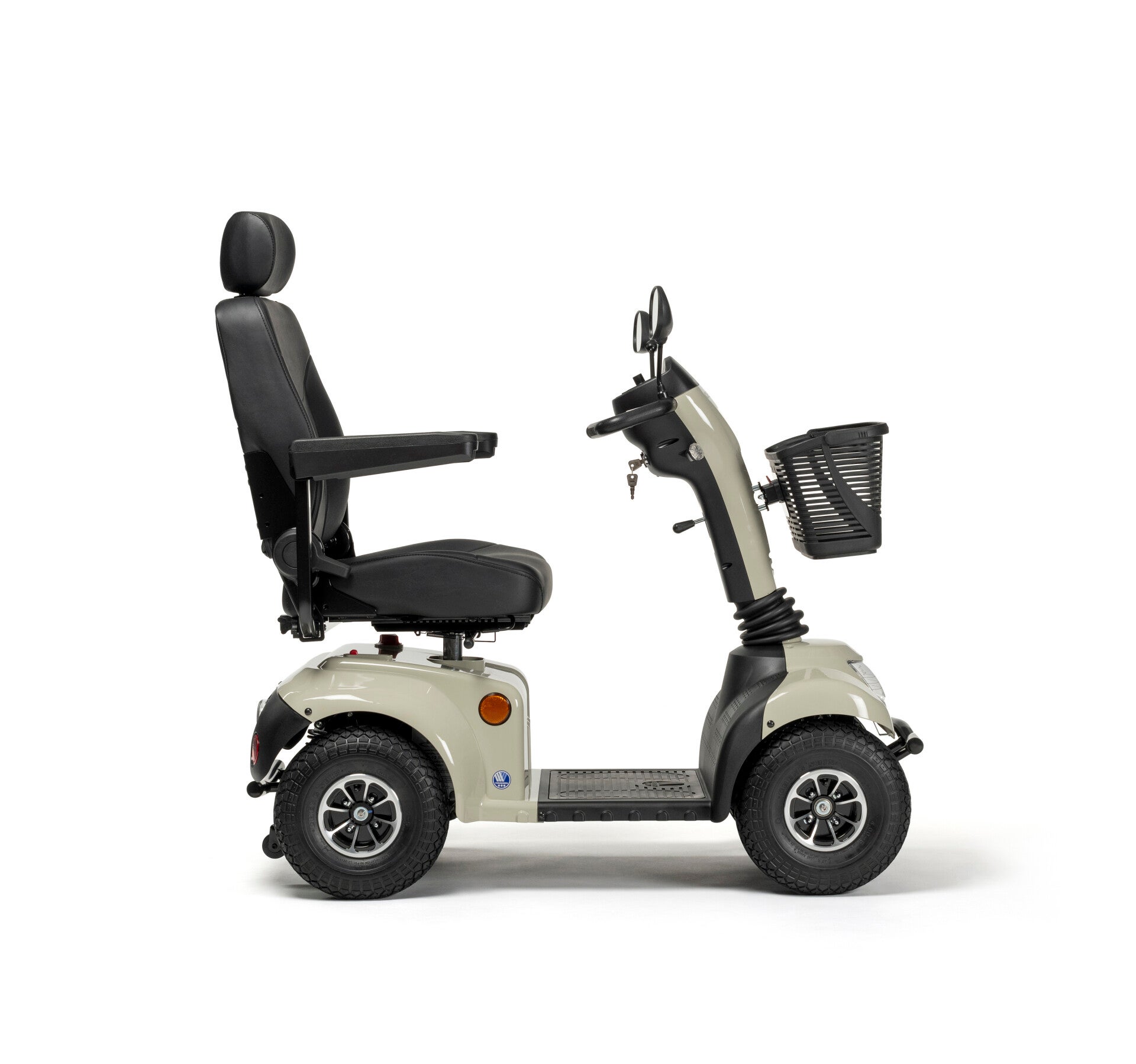 De Vermeiren Ceres 4 Deluxe Scootmobiel heeft ook zwaardere batterijen ten opzichte van de Ceres 3 en 4.  Hierdoor kan je toch een stuk langer rijden. Standaard voorzien van een spiegel, draaibare luxestoel met hoofdsteun, mandje en anti-slip mat. De scooter heeft ook zwaardere batterijen dan de Ceres 3 en 4, waardoor je een stuk verder kunt rijden.