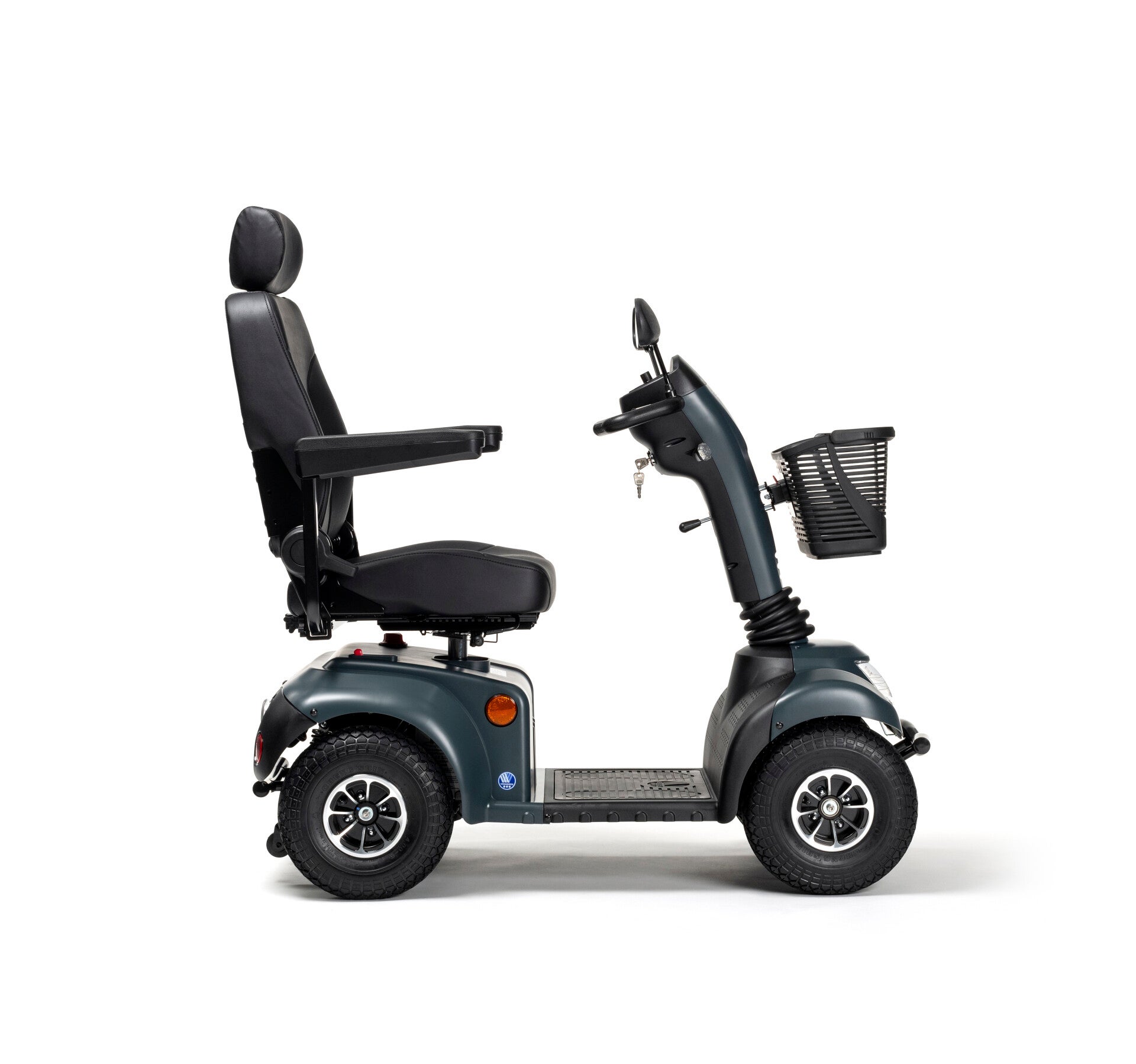 De Vermeiren Ceres 4 Deluxe Scootmobiel heeft ook zwaardere batterijen ten opzichte van de Ceres 3 en 4.  Hierdoor kan je toch een stuk langer rijden. Standaard voorzien van een spiegel, draaibare luxestoel met hoofdsteun, mandje en anti-slip mat. De scooter heeft ook zwaardere batterijen dan de Ceres 3 en 4, waardoor je een stuk verder kunt rijden.